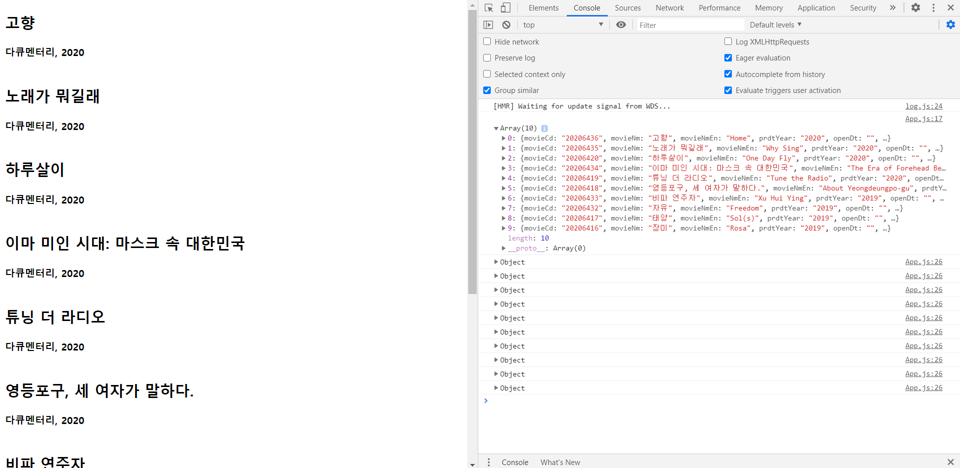 데이터를 출력하기 위해 따로 Movie.js라고 파일을 만들었다