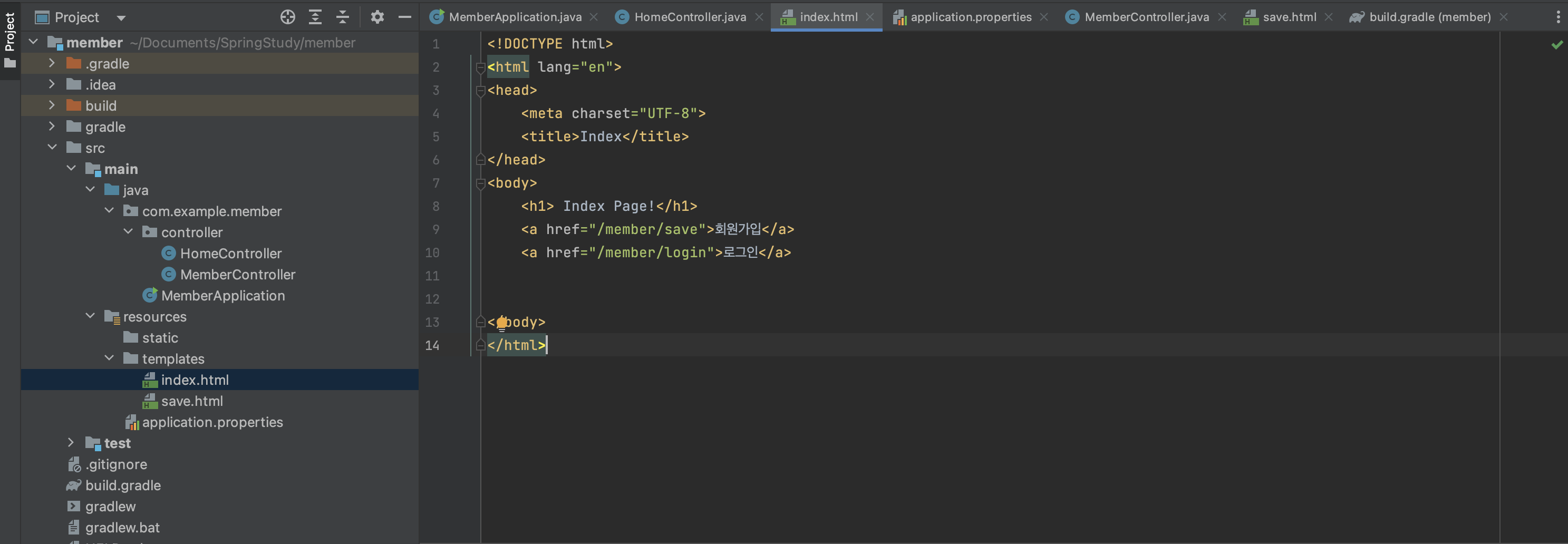 이번에는 Member를 관리하는 Controller를 만들겠습니다.