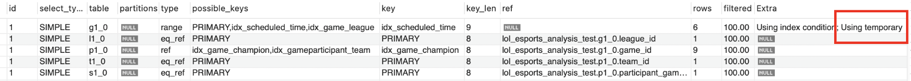 약 110개의 필드를 가진 game_player_stat테이블이라 불필요한 오버헤드가 생기게 됩니다.
