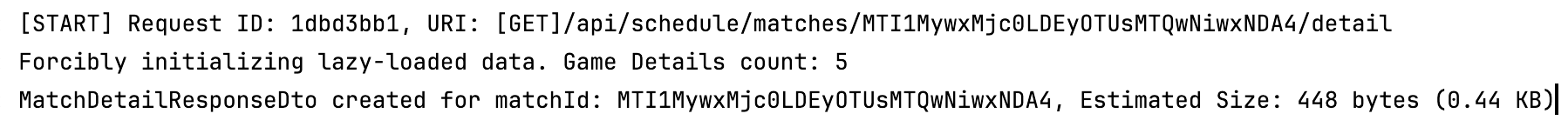 - 가장 유동적인 DTO가 상세정보 서비스인데 최대 경기 수 5개인 경우도 평균치와 24Byte 차이밖에 안남(448 - 424)