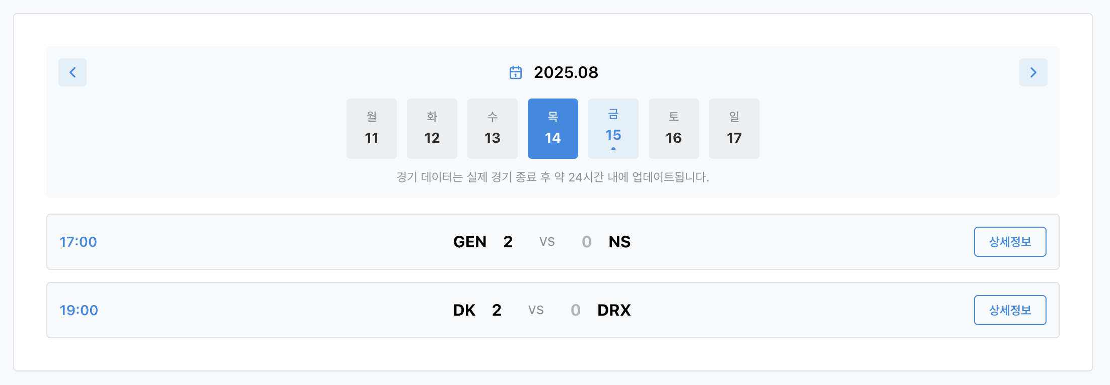 LCK 일정 서비스 업데이트 주기가 6시간 간격으로 스케줄링을 통해 저장됩니다.