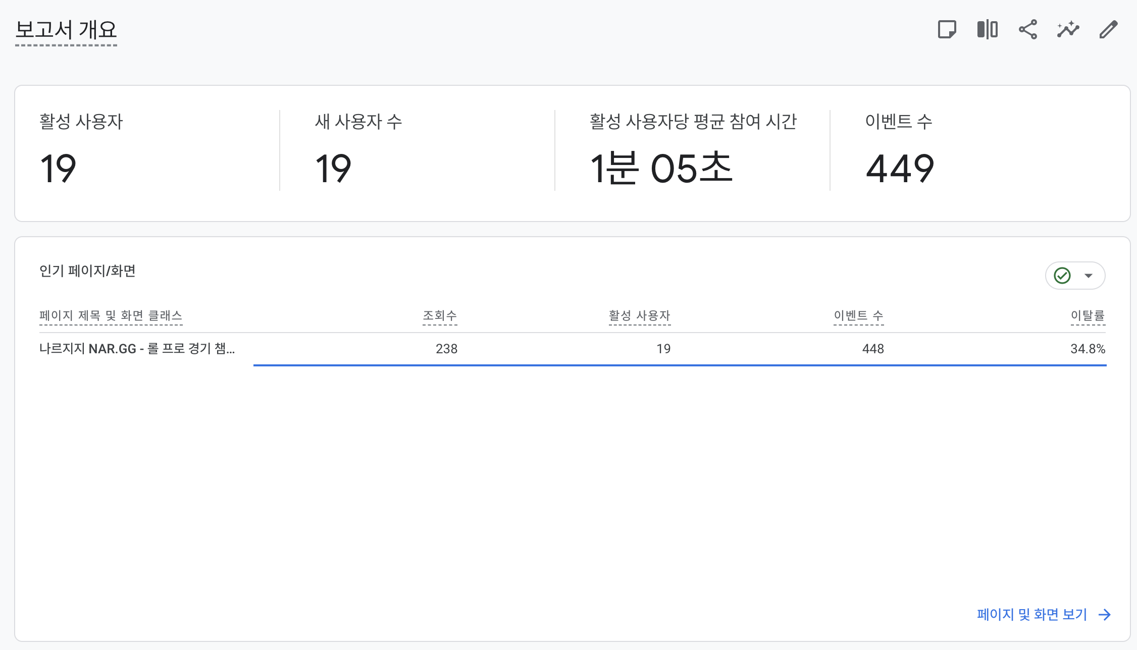 그래도 이런 기능이 있다는 것을 회의를 통해 처음 알았고 어떤 페이지가 인기있고 이탈율이 높은지 분석할 수 있는 도구가 생겼네요.
